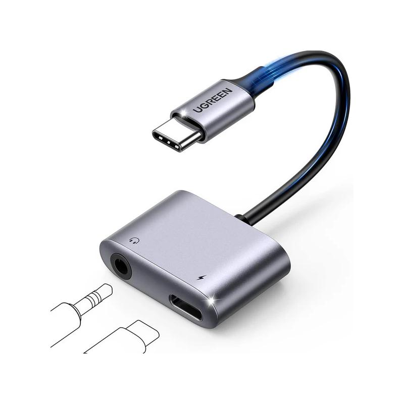 ADAPTOR Incarcare si audio Ugreen, "CM231", 1 x USB Type-C(T) la 1 x USB Type-C(M) si 1 x Jack 3.5mm(M), lungime cablu 10 cm, gri "60164" - 6957303861644