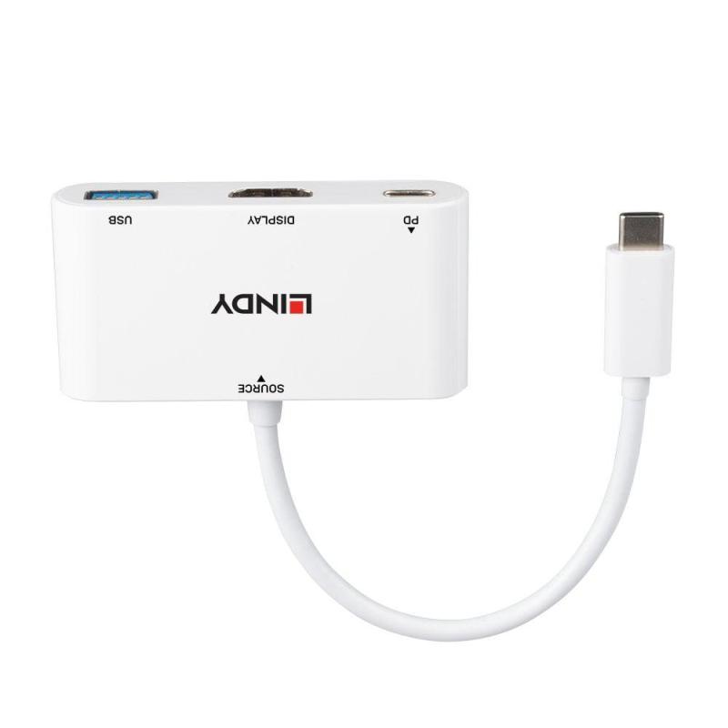 Adaptor Lindy LY-43340, USB Type C to HDMI with USB Type A port and Power Delivery, alb