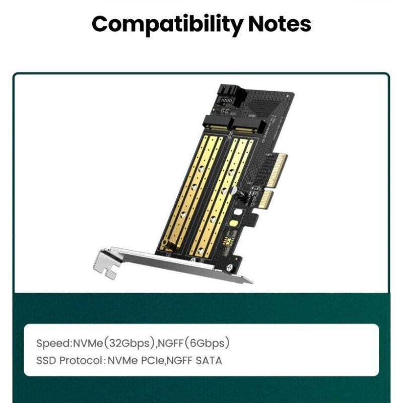 ADAPTOR Ugreen, "CM302" 2 X M.2 (M)(NVMe) la PCle 3.0, adaptor pt. SSD M.2 cu form factor 2280, 2260, 2242 si 2230 "70504" - 6957303875047