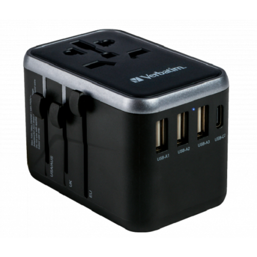 Adaptor universal Verbatim UTA-04, 6-in-1Priza cu USB-C PD si QC, USB-C, 3 x USB-A "49546" (include TV 0.8lei)