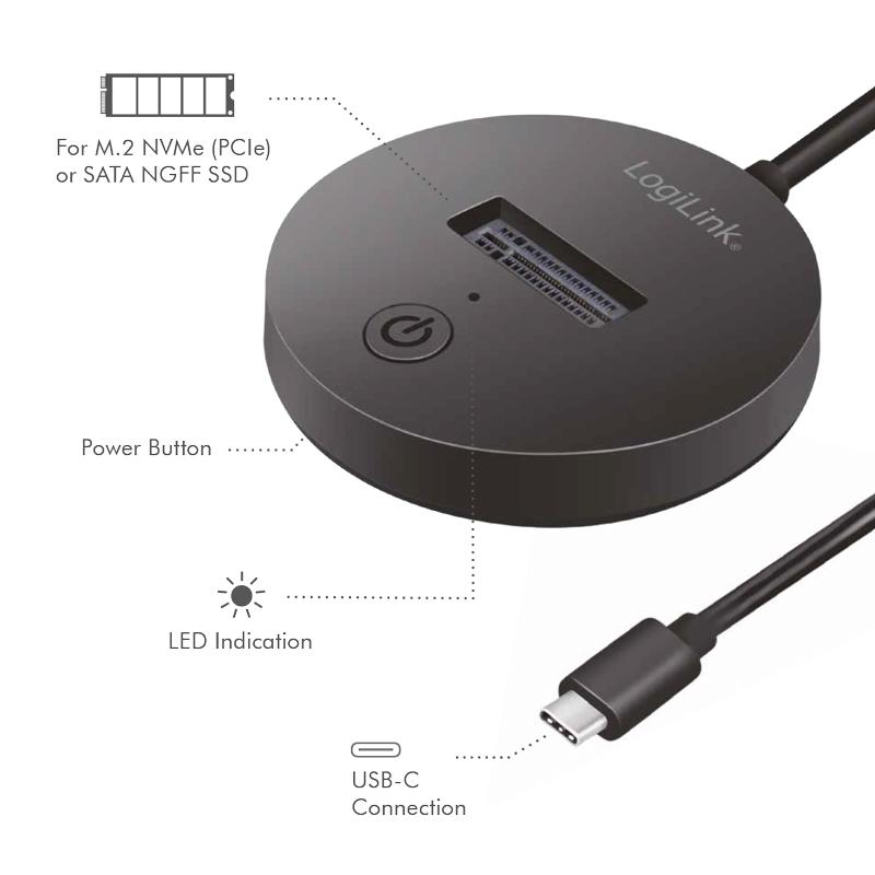 ADAPTOR USB LOGILINK, M.2 NVMe (PCIe) / SATA (NGFF) la USB 3.2 Gen 2, viteza max 10 Gb/s, negru "QP0032" (include TV 0.18 lei)