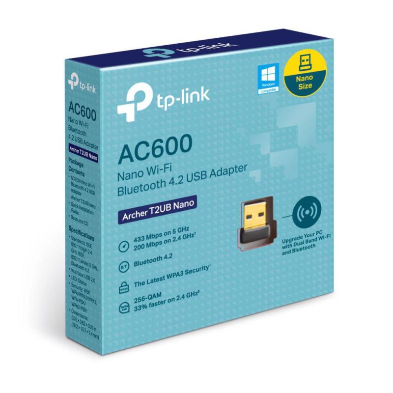 Adaptor wireless TP-Link, ARCHER T2UB NANO; AC600 Dual-band, USB 2.0; Bluetooth 4.2, Wireless Standards: EEE 802.11ac, IEEE 802.11a, IEEE 802.11n, IEEE 802.11g, IEEE 802.11b, 5GHz - 433Mbps, 2.4GHz 200Mbps, Dimensiuni: 15.7*7.4*19.2mm.