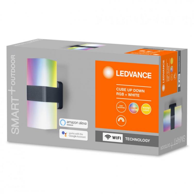 Aplica LED RGB pentru exterior Ledvance SMART+ Wifi Cube UpDown, 14W, 950 lm, lumina alba si color (3000K), IP44/IK03, 205x110x80mm, Gri inchis