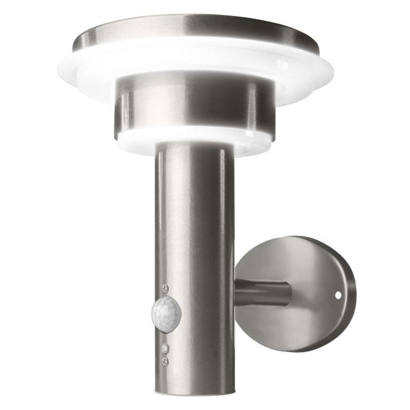Aplica LED solara pentru exterior cu senzor de lumina si miscare Ledvance Endura Style Solar Wall Sensor Double Circle, 6W, 3.2 V, 400 lm, lumina calda (3000K), IP44/IK03, 220x185x178mm, otel, PIR °90, raza detectie 6m, Gri