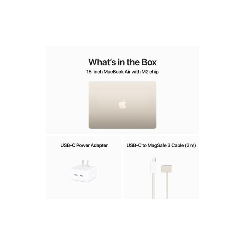 MacBook Air 15.3" Retina/ Apple M2 (CPU 8- core, GPU 10- core, Neural Engine 16- core)/8GB/256GB (35W Dual USB‑C Port) - Starlight - US KB (2023) (US power supply with included US-to-EU adapter)