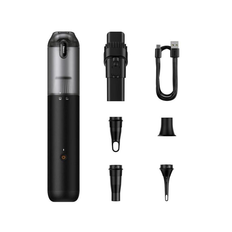 Aspirator de mana Baseus A3 Lite, putere aspirare 12000pa, suporta incarcare QC3.0, filtru HEPA, acumulator 6000mAh cablu inclus Type-C la USB, negru