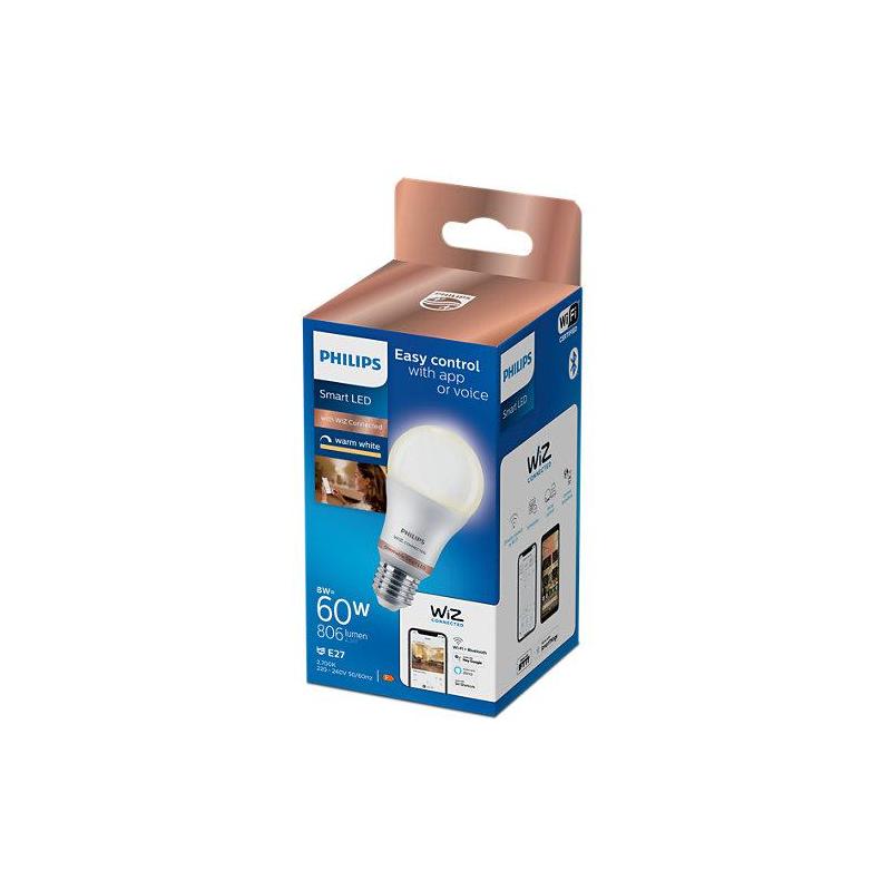 Bec LED inteligent Philips Bulb A60, Wi-Fi, Bluetooth, E27, 8W (60W), 806 lm, lumina calda (2700K), dimabil