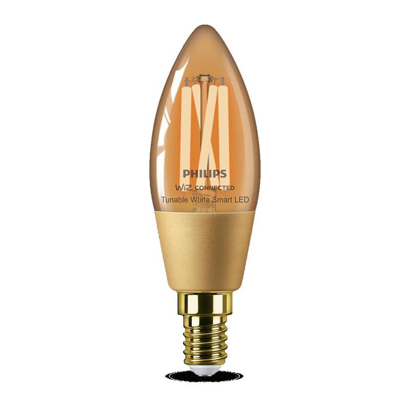 Bec LED inteligent vintage (decorativ) Philips Filament Candle Amber C35, Wi-Fi, Bluetooth, E14, 4.9W (25W), 370 lm, lumina alba (2000-5000K)
