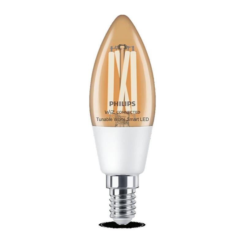 Bec LED inteligent vintage (decorativ) Philips Filament Candle Clear C35, Wi-Fi, Bluetooth, E14, 4.9W (40W), 470 lm, lumina alba (2700-6500K)