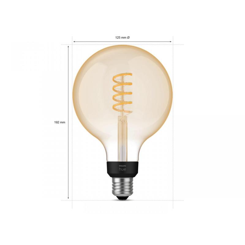 Bec LED inteligent vintage (decorativ) Philips Hue Filament Glob G125, Bluetooth, E27, 7W (40W), 550 lm, lumina alba (2200-4500K)