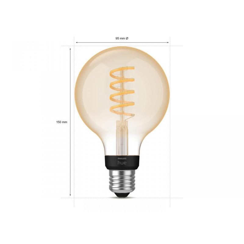 Bec LED inteligent vintage (decorativ) Philips Hue Filament Glob G93, Bluetooth, E27, 7W (40W), 550 lm, lumina alba (2200-4500K)