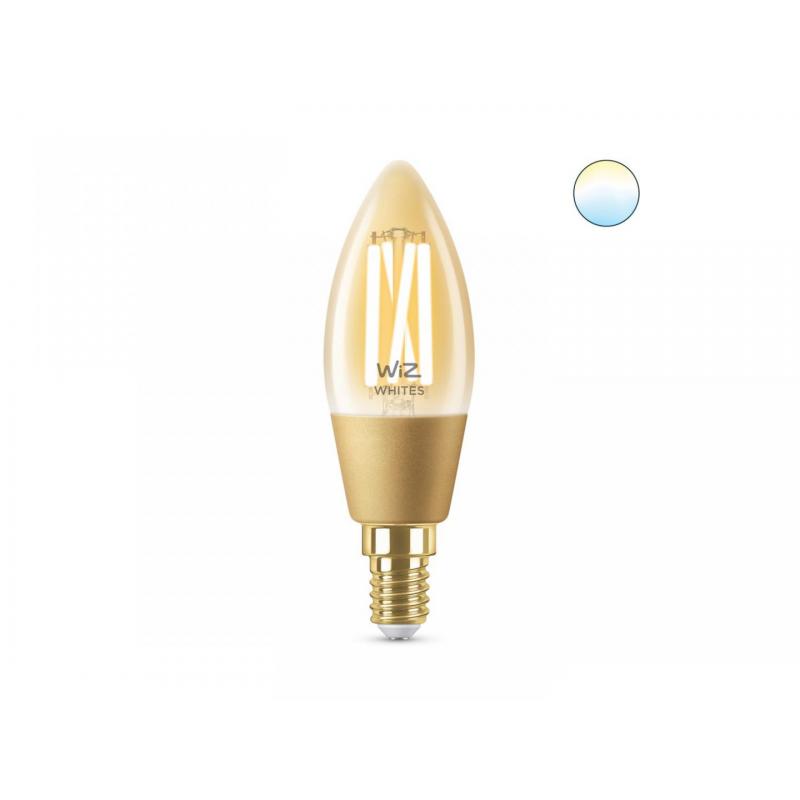Bec LED inteligent vintage (decorativ) WiZ Connected Filament Gold C35 ,Wi-Fi, E14, 4.9W (25W), 370 lm, lumina alba (2000-5000K), compatibilGoogle Assistant/Alexa/Siri