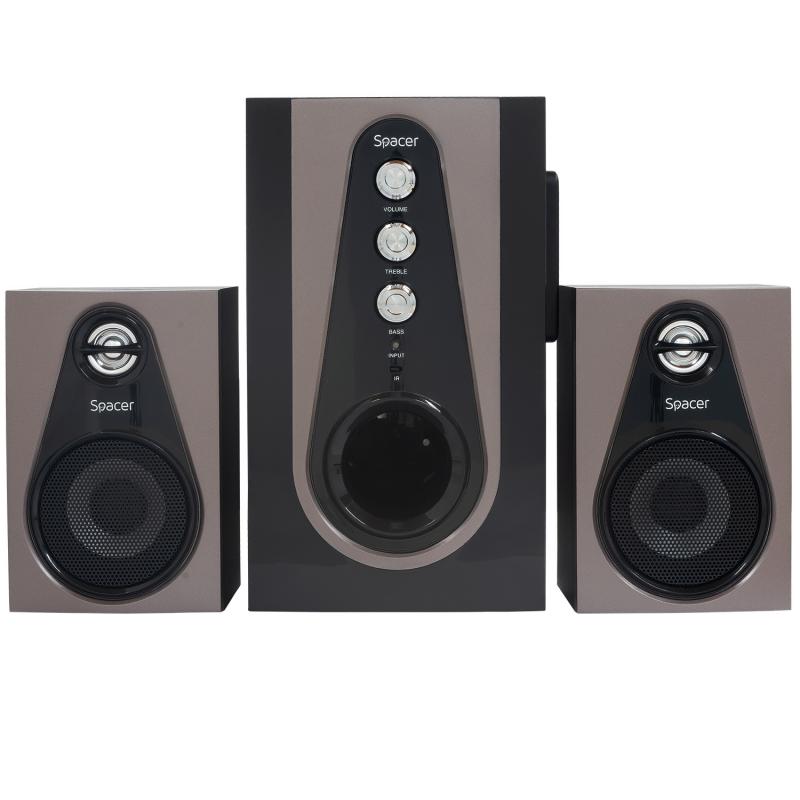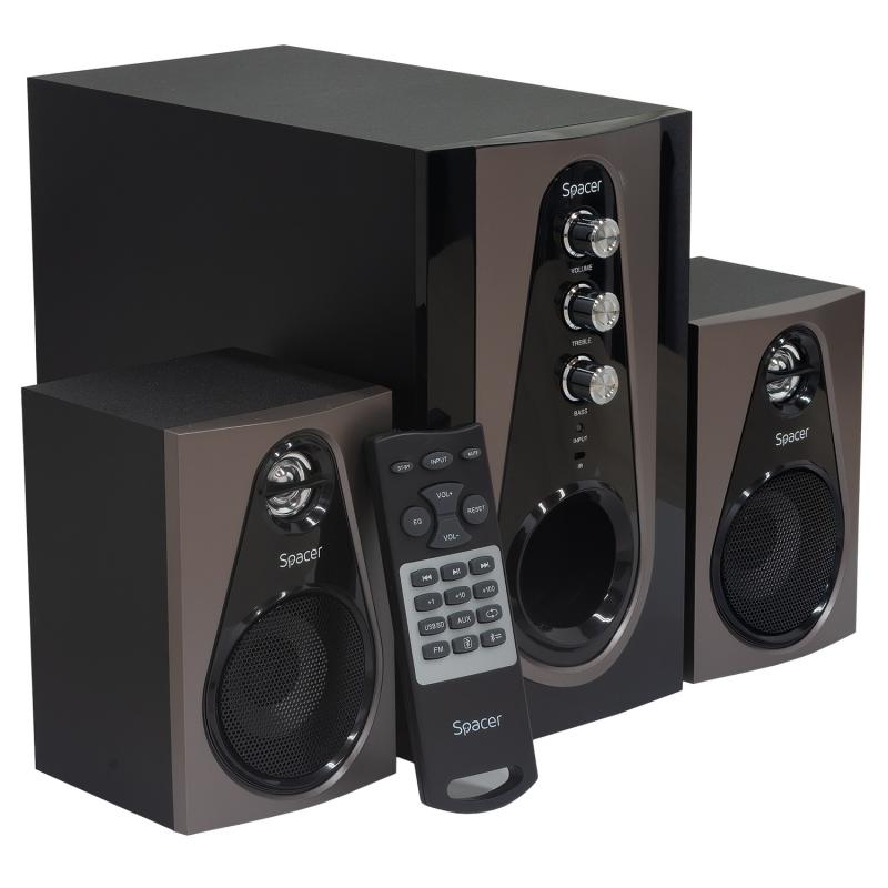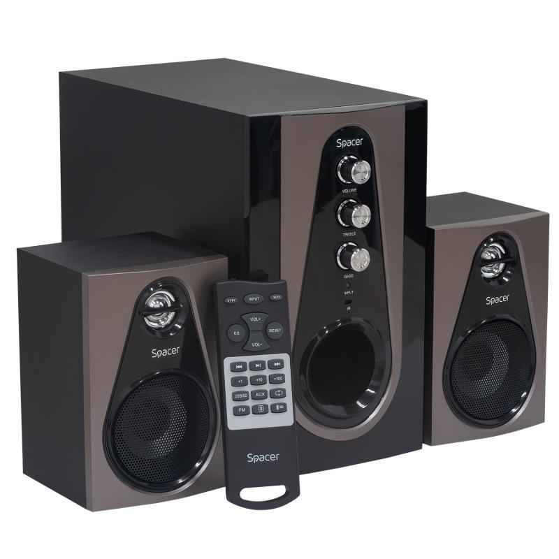 Boxe Spacer 2.1, 30W RMS ( 2x 5W + 20W), alimentare 220V, conectori Bluetooth, USB, Jack 3.5mm, Radio FM, SD, RCA, contine telecomanda wireless, negru