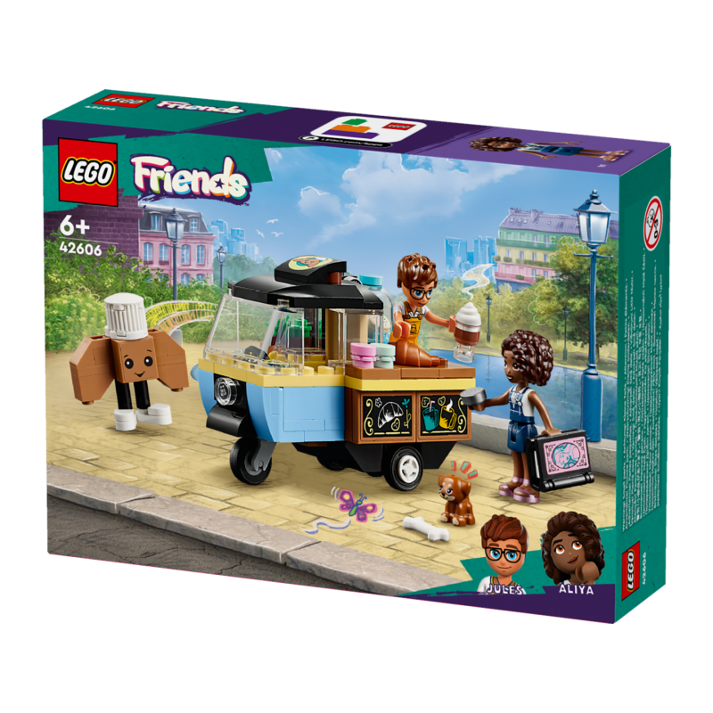 Inspiră joaca creativă cu setul LEGO® Friends Brutăria pe roți (42606), conceput pentru fete, băieți și copii de 6+ ani. Copiii care adoră joaca pe roluri pot imagina o poveste în care Aliya vizitează toneta cu produse de patiserie împreună cu cățelușa ei Aira. Setul include 2 minipăpuși, un câine, o tonetă, o mascotă în formă de produs de patiserie și accesorii. Accesoriile din acest set oferă ocazia celor mici să creeze propriile povești în care îl ajută pe Jules să-și servească clienții din micul vehicul. Accesoriile includ un croasant, 2 prăjiuri macaron, fursecuri, un recipient pentru fursecuri, o cafetieră, o ceașcă de cafea, ciocolată caldă și o ceașcă de ceai, plus o monedă și o carte pentru Aliya și un os pentru Aira. Descoperă mai multe idei de cadouri pentru copiii care adoră jucăriile despre gătit din universul LEGO Friends, în care copiii au o mulțime de oportunități pentru crearea de povești și interpretarea de aventuri din viața reală. Acest set este însoțit de aplicația LEGO Builder pentru o aventură de construcție ușoară și intuitivă. În aplicație, copiii pot apropia și roti modelele în 3D, salva seturi și monitoriza propriul progres.