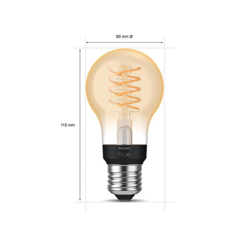 Bec LED inteligent vintage (decorativ) Philips Hue Filament Bulb A60, Bluetooth, E27, 7W (40W), 550 lm, lumina calda (2100K)