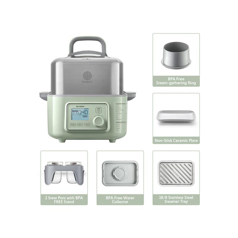 BUYDEEM Multi function Digital Food Steamer, model G564, color Cozy Greenish, EU
