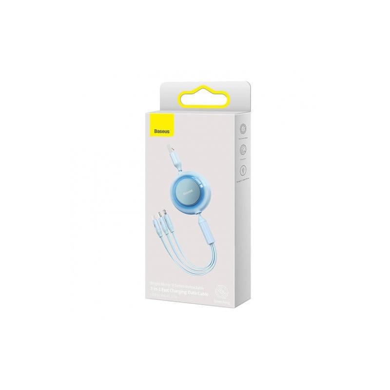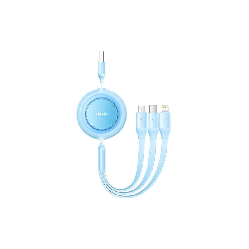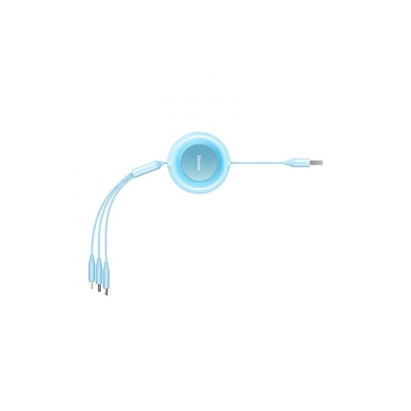 CABLU alimentare si date Baseus Bright Mirror 2, retractabil 3-in-1, pt smartphone,USB la Micro-USB+Lightning + USB Type-C 3.5A, 1.1m, albastru "CAMJ010017" - 6932172609047