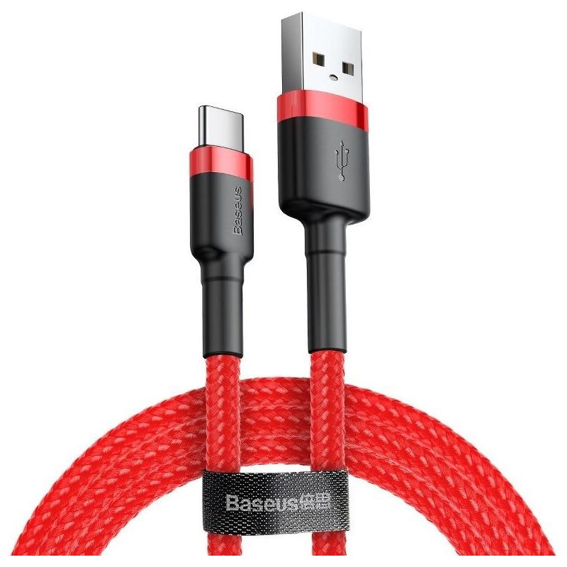 CABLU alimentare si date Baseus Cafule, Fast Charging Data Cable pt. smartphone, USB la USB Type-C 3A, 1m, rosu "CATKLF-B09" - 6953156278196
