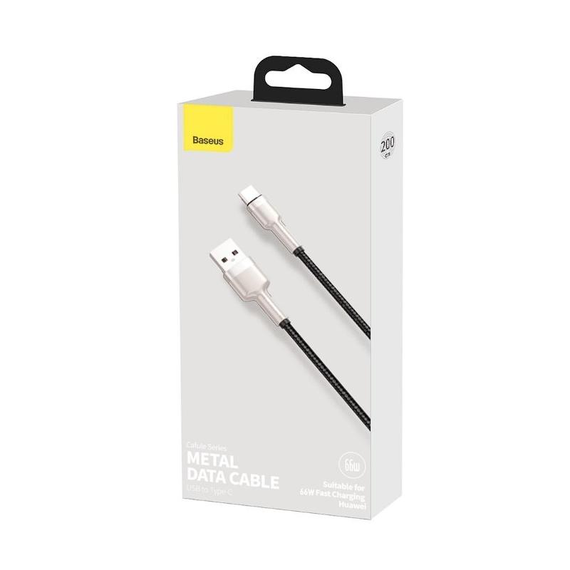 CABLU alimentare si date Baseus Cafule Metal, Fast Charging Data Cable pt. smartphone, USB la USB Type-C 66W, 2m, negru "CAKF000201" - 6953156209770