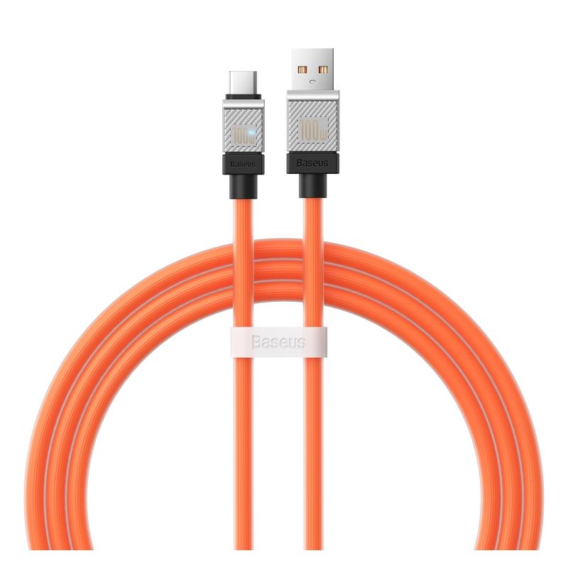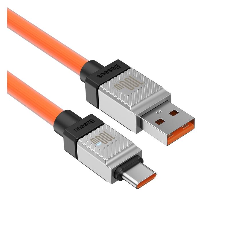 CABLU alimentare si date Baseus Crystal Shine, Fast Charging Data Cable pt. smartphone, USB la USB Type-C 100W, 1m, braided, portocaliu "CAKW000607" - 6932172626839
