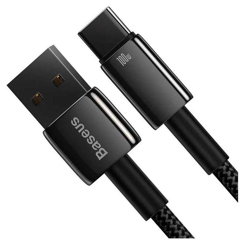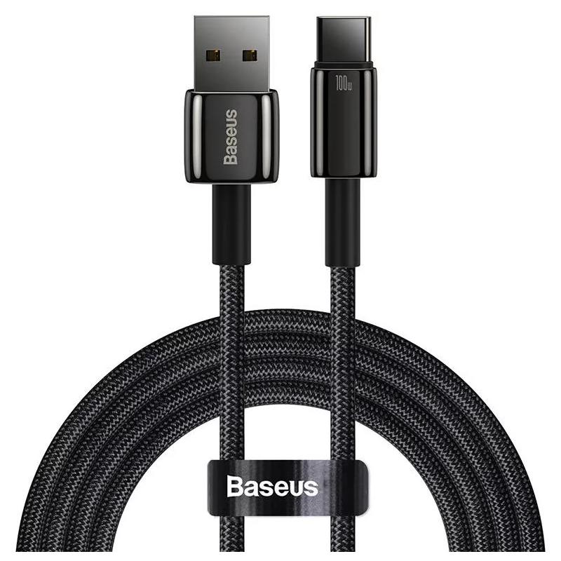 CABLU alimentare si date Baseus, Fast Charging Data Cable pt. smartphone, USB la USB Type-C (T), 100W, 480Mbps, aliaj zinc, braided(nylon), 1m, negru, "CAWJ000001" (include TV 0.18lei) - 6932172618087
