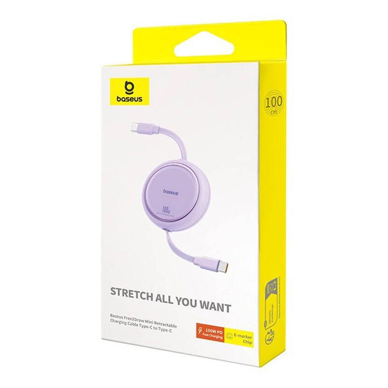 CABLU alimentare si date Baseus Free2Draw Mini, Fast Charging Data Cable pt. smartphone, retractabil, USB Type-C la USB Type-C 100W, 1m, violet "P10364500511-00" - 6932172647544