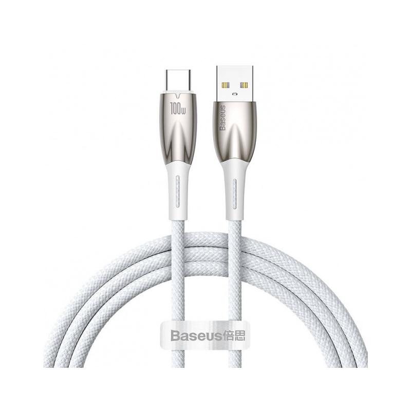CABLU alimentare si date Baseus Glimmer, Fast Charging Data Cable pt. smartphone, USB la USB Type-C 100W, 1m, alb "CADH000402" - 6932172617981