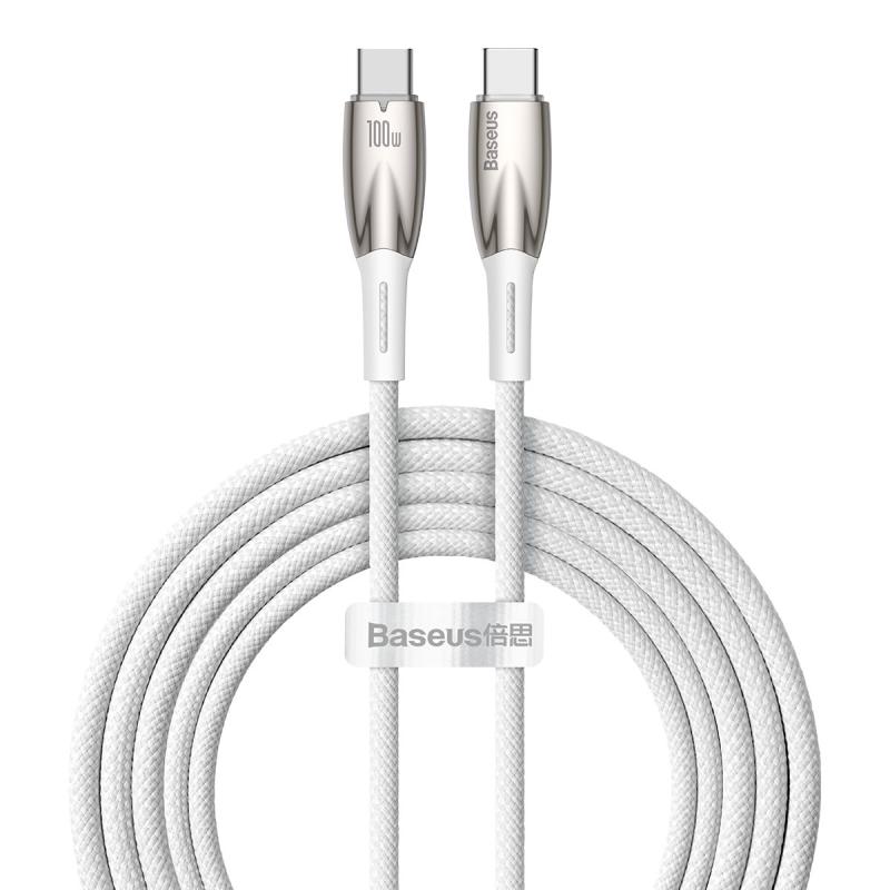 CABLU alimentare si date Baseus Glimmer, Fast Charging Data Cable pt. smartphone, USB Type-C la USB Type-C 100W, 2m, alb "CADH000802" - 6932172618070
