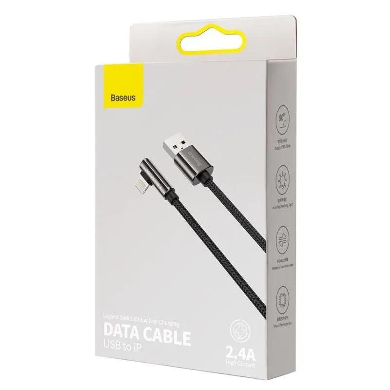 CABLU alimentare si date Baseus Legend Elbow, Fast Charging Data Cable pt. smartphone, USB la Lightning Iphone 2.4A, braided, 1m, negru "CALCS-01" (include TV 0.06 lei) - 6953156207516