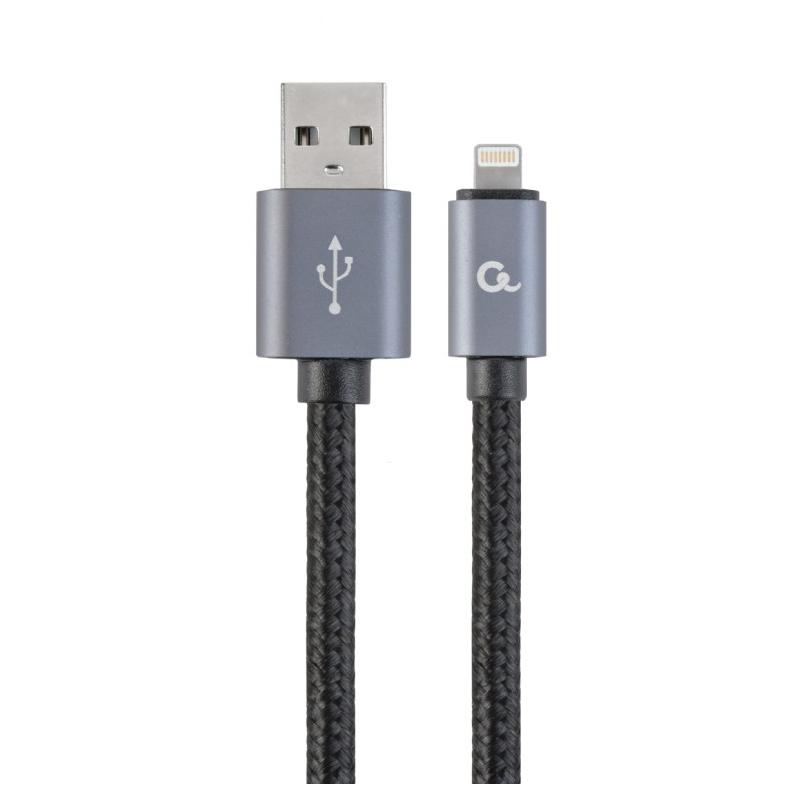 CABLU alimentare si date GEMBIRD, pt. smartphone, USB 2.0 (T) la Lightning (T), 1.8m, premium, conectori auriti, cablu cu impletire din bumbac, black, "CCB-mUSB2B-AMLM-6" (include TV 0.06 lei)