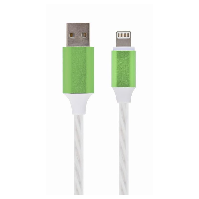 CABLU alimentare si date GEMBIRD, pt. smartphone, USB 2.0 (T) la Lightning (T), 1m, LED light effect, red/green/blue, "CC-USB-8PLED-1M" (include TV 0.06 lei)