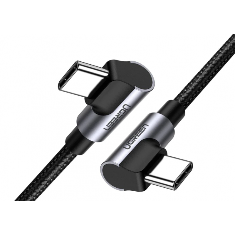 CABLU alimentare si date Ugreen, "US323", Fast Charging Data Cable pt. smartphone, USB Type-C la USB Type-C 60W/3A Angled 90, braided, 1m, negru "70529" (include TV 0.06 lei) - 6957303875290