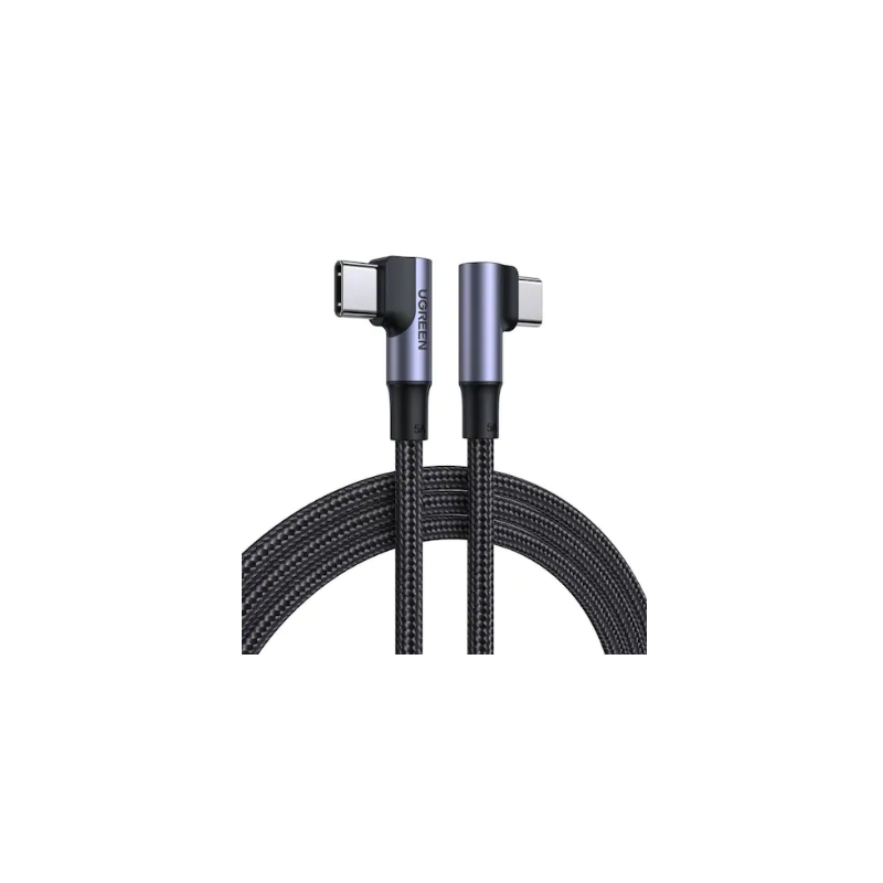 CABLU alimentare si date Ugreen, "US335", Fast Charging Data Cable pt. smartphone, USB Type-C la USB Type-C 100W/5A Complete Angled 90, braided, 1m, negru "70696" (include TV 0.06 lei) - 6957303876969