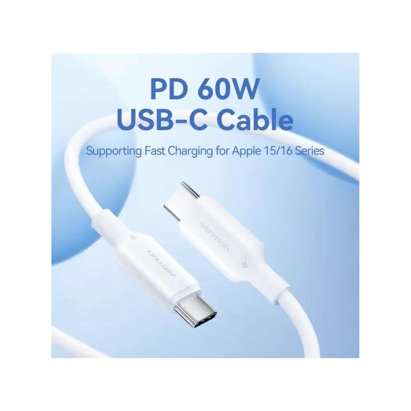 Cablu alimentare si date Vention, USB Type-C (T) la USB Type-C (T), 1m, 480 Mbps, 60W, PVC, alb, "TRCWF" -6922794783348