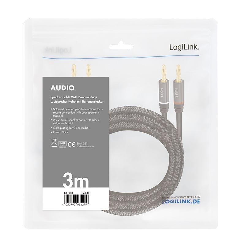 CABLU audio LOGILINK stereo (2 x 2.5 mm jack T/T), 3m, conectori auriti, negru "CA1210" (include TV 0.18lei)