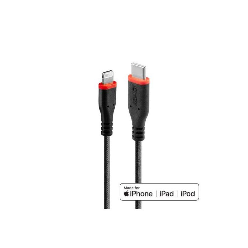 Cablu Lindy LY-31287, Type C to Lightning reinforced, 2m, negru