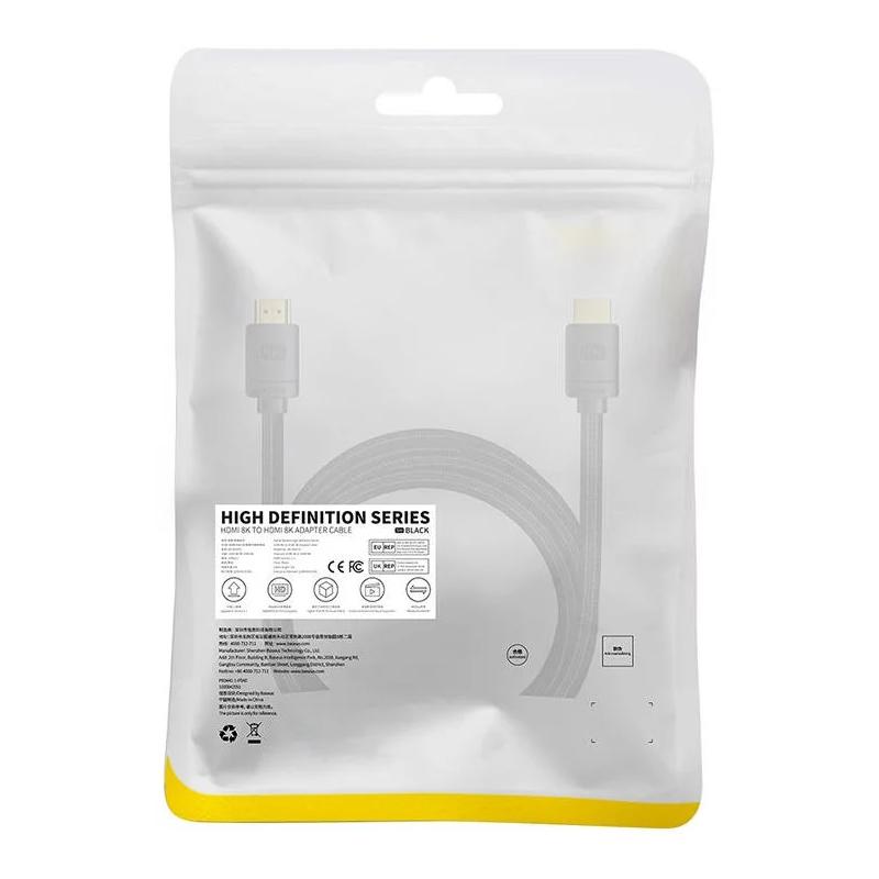 CABLU video Baseus High Definition, HDMI (T) la HDMI (T), versiunea 2.1, rezolutie maxima 8K UHD (7680 x 4320) la 60 Hz, conectori auriti, 5m, negru "WKGQ040201" - 6932172614140