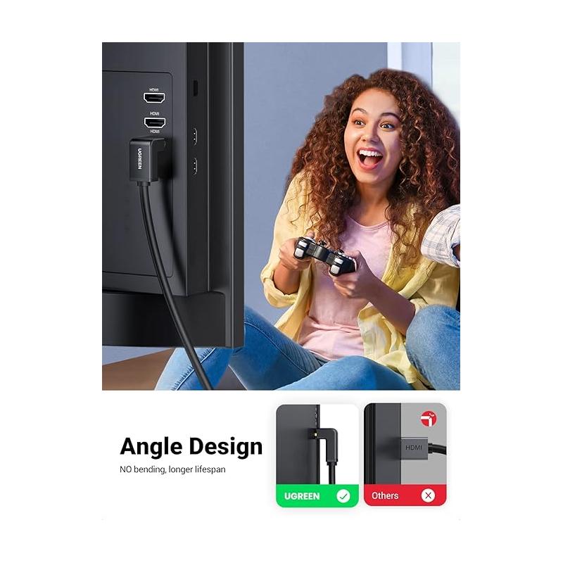 CABLU video Ugreen, "HD103" HDMI (T) la HDMI (T) 4K la 30Hz, unghi 90 grade la un cap, lungime 2m, conectori auriti, negru "10173" - 6957303811731