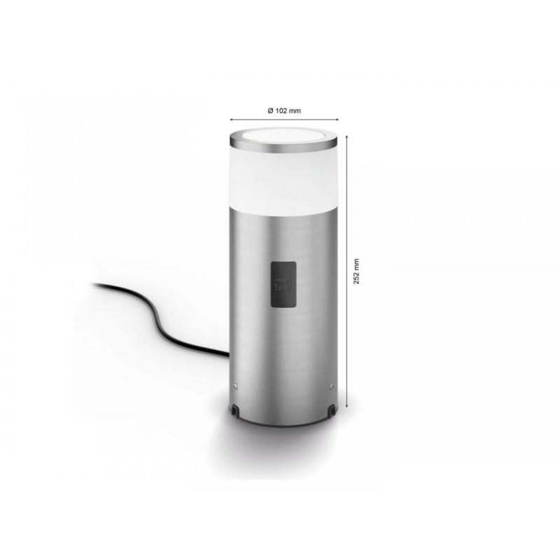 Stalp LED RGB pentru iluminat exterior Philips Hue Calla, 8W (49W), 590 lm, lumina alba si color (2000-6500K), IP44, 252x102mm, Inox