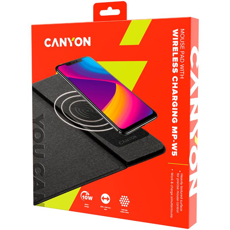 CANYON Mouse Mat with wireless charger, Input 5V/2A,9V2A Output 5W/7.5W/10W, 324*244*6mm, USB Type C cable length 1m, Black, 220g