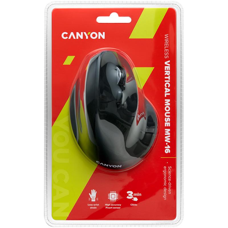 CANYON MW-16 wireless Vertical mouse, USB2.4GHz, Optical Technology, 6 number of buttons, USB 2.0, resolution: 800/1200/1600 DPI, black, size: 86*115*71mm,90g