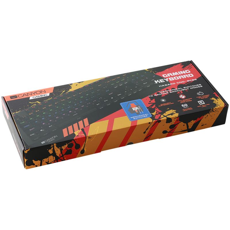 CANYON Wired multimedia gaming keyboard with lighting effect, 108pcs rainbow LED, Numbers 104keys, EN double injection layout, cable length 1.8M, 450.5*163.7*42mm, 0.90kg, color black