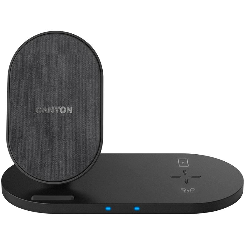 CANYON WS-202 2in1 Wireless charger, Input 5V/3A, 9V/2.67A, Output 10W/7.5W/5W, Type c cable length 1.2m, PC+ABS,with PU part ,180*86*111.1mm, 0.185Kg,Black