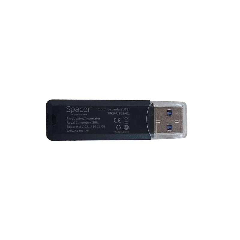 CARD READER extern SPACER, interfata USB 3.0, citeste/scrie: SD, micro SD, Negru, "SPCR-USB3-02"
