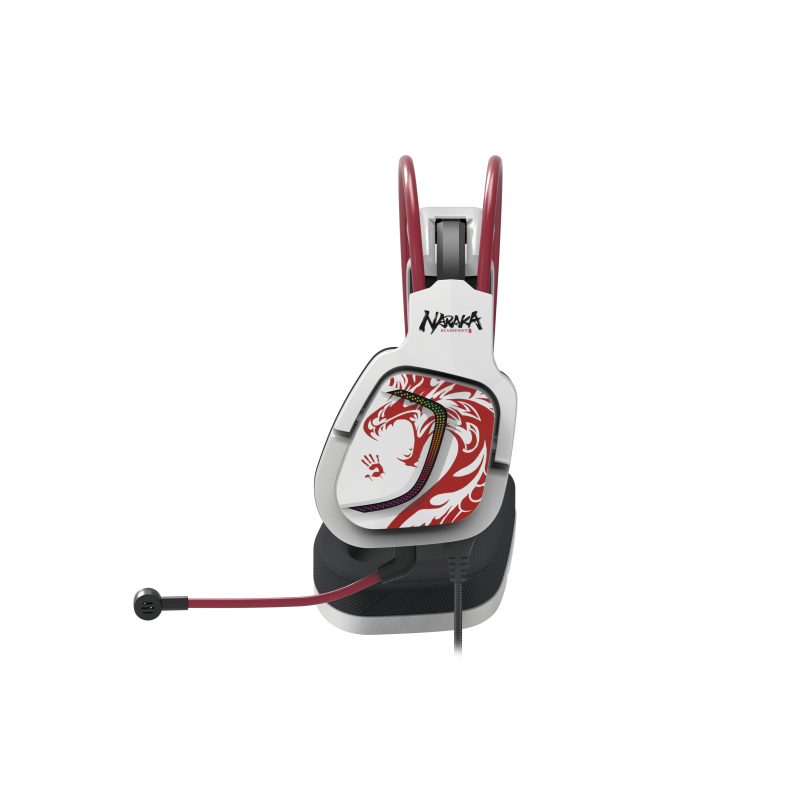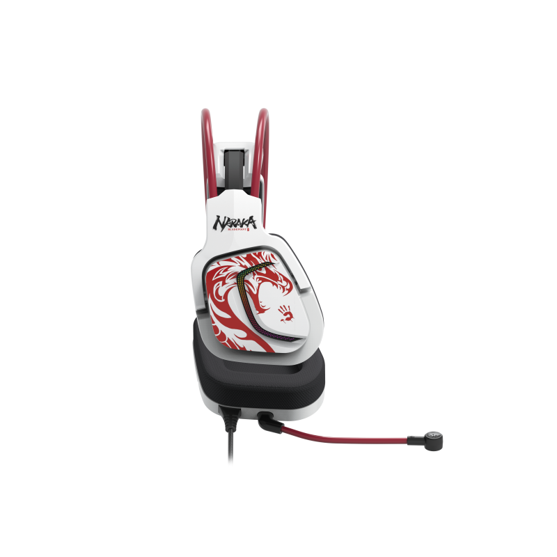 CASTI A4TECH - gaming, "Bloody co-branded Naraka", cu fir, USB, tip standard, utilizare multimedia (PC and more), microfon pe casca, iluminare, 7.1 virtual sound, alb, USB, cablu 2m, "G575"