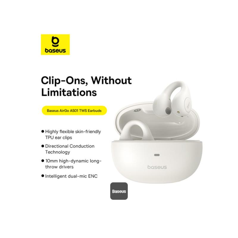 CASTI Baseus AirGo AS01 Open-Ear TWS, pt smartphone, wireless, bluetooth 5.3, microfon pe casca, 25 ore durata baterie, alb "A00069101223-00"