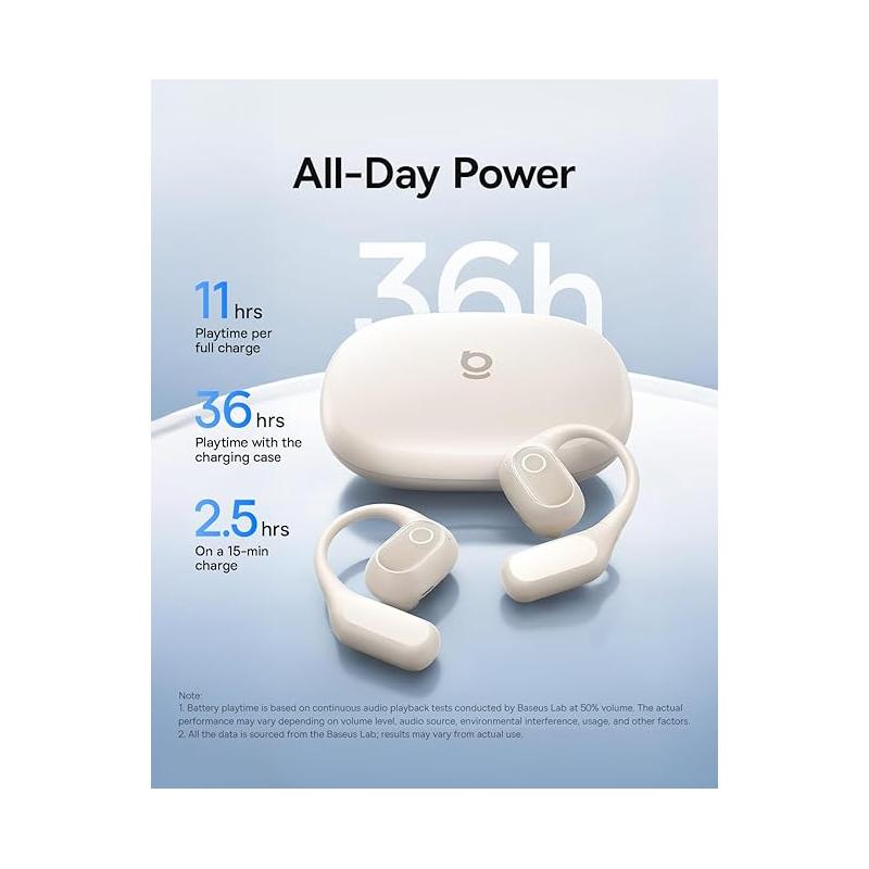 CASTI Baseus Bowie Eli 2i Fit Open-Ear True Wireless, on ear, pt smartphone, microfon pe casca, conectare prin Bluetooth 6.0, alb "A0102603" - 6932172696924