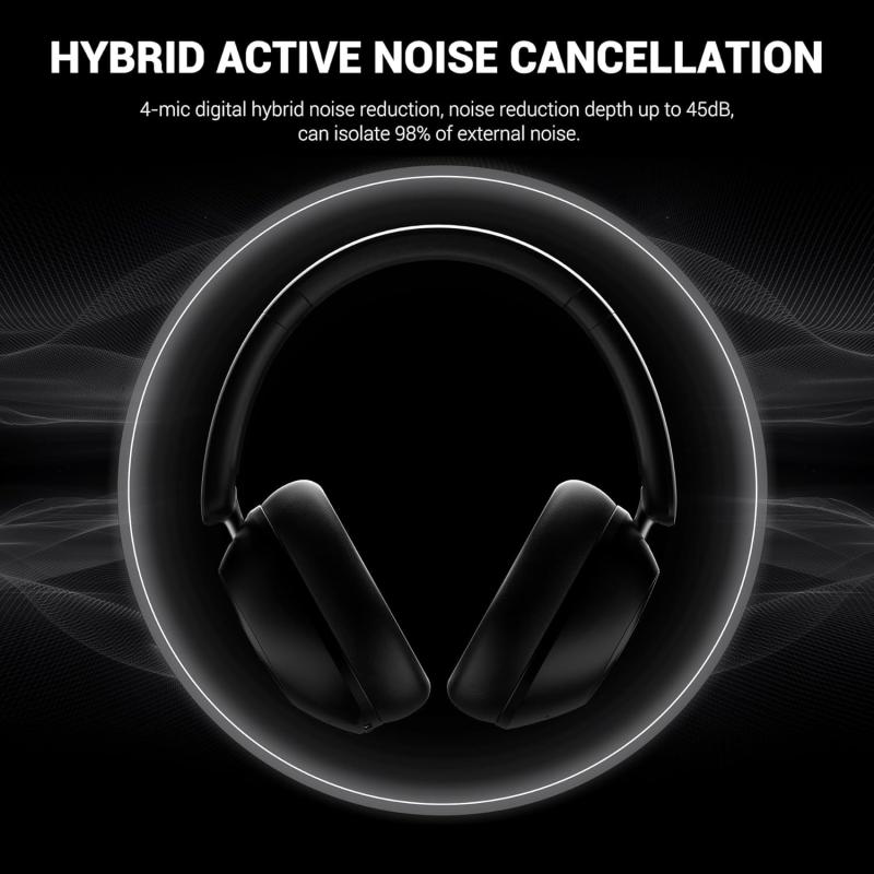 Casti OneOdio "A5", Over-Ear, utilizare multimedia, Bluetooth 5.4 | fir Jack 3.5mm, multi-point connection, hybrid ANC, pana la 75 de ore, pliabile, difuzor 40mm, negru, "A5-Black" -