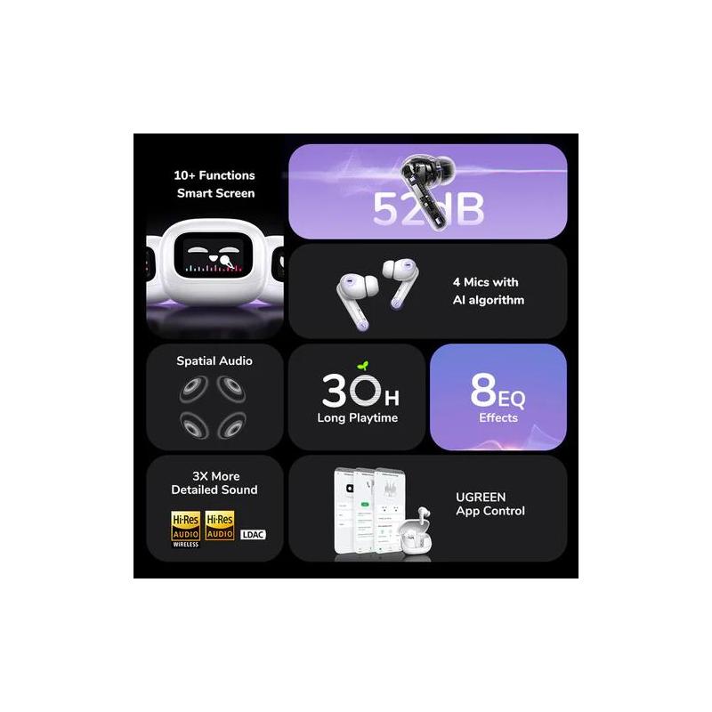 CASTI Ugreen, "CM123" HiTune T6 Magic TWS, 30 ore baterie, incarcare USB Type-C, Over Ear, bluetooth 5.4, alb "55137",
