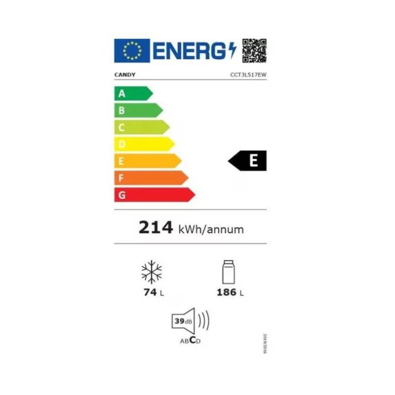 Combina frigorifica CANDY CCT3L517EW, Low Frost, 260 l, H 176 cm, Clasa E, alb